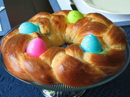 3. Easter Bread ( sweet bread with hard boiled painted eggs eaten at Easter)